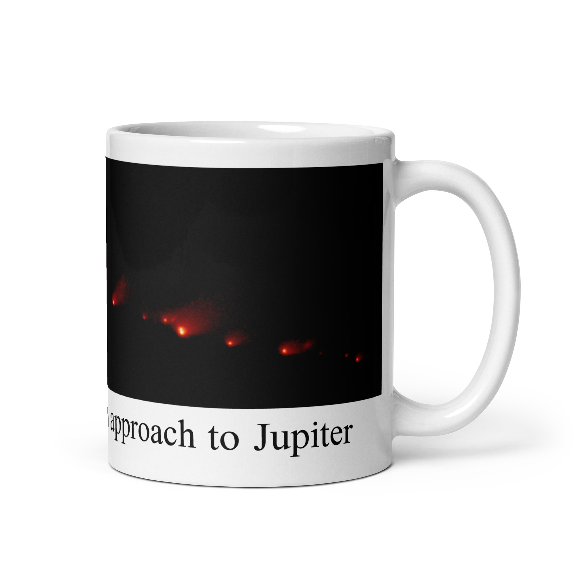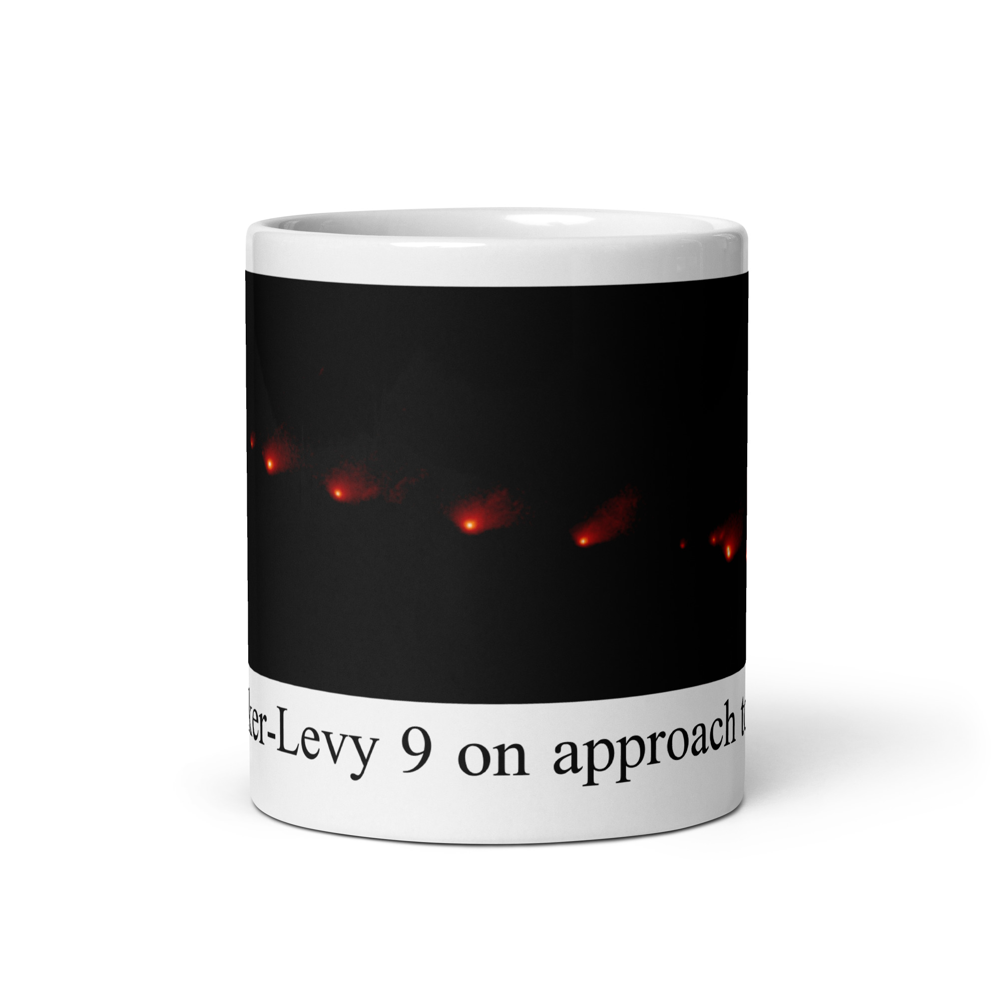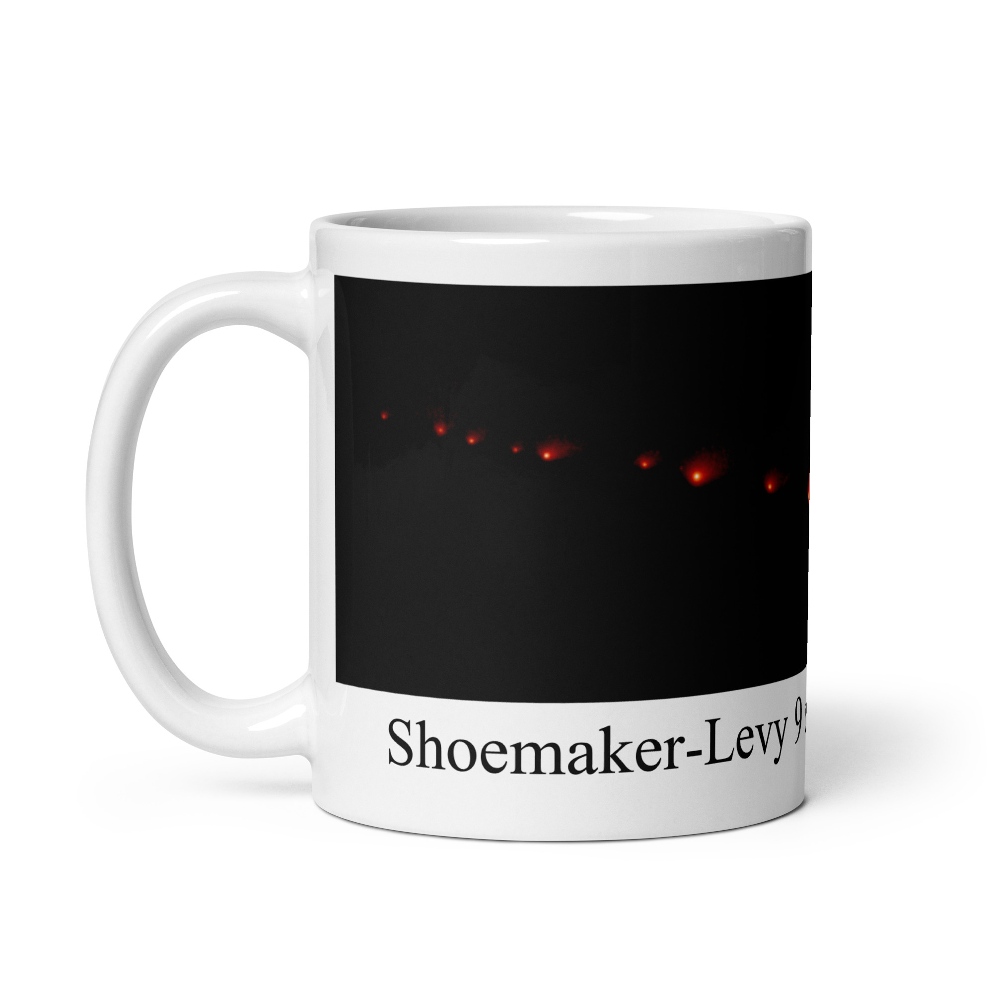 Shoemaker-Levy 9 on approach to Jupiter White glossy mug