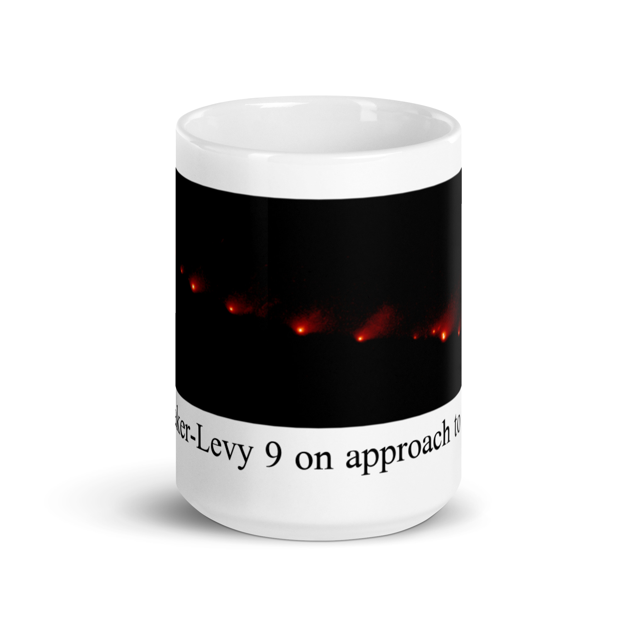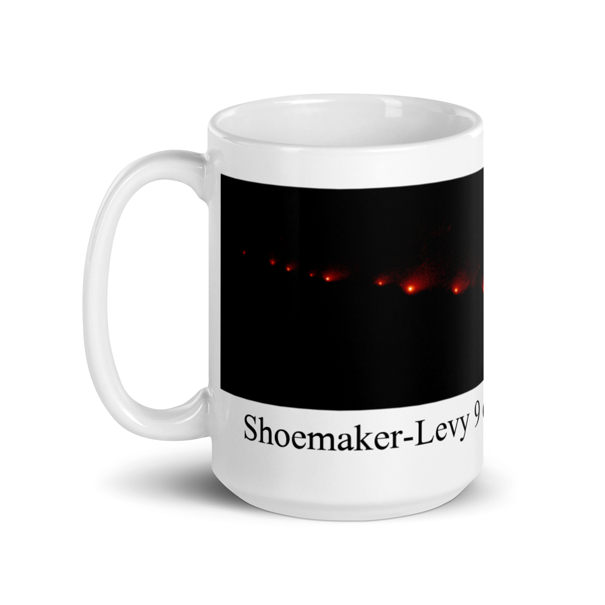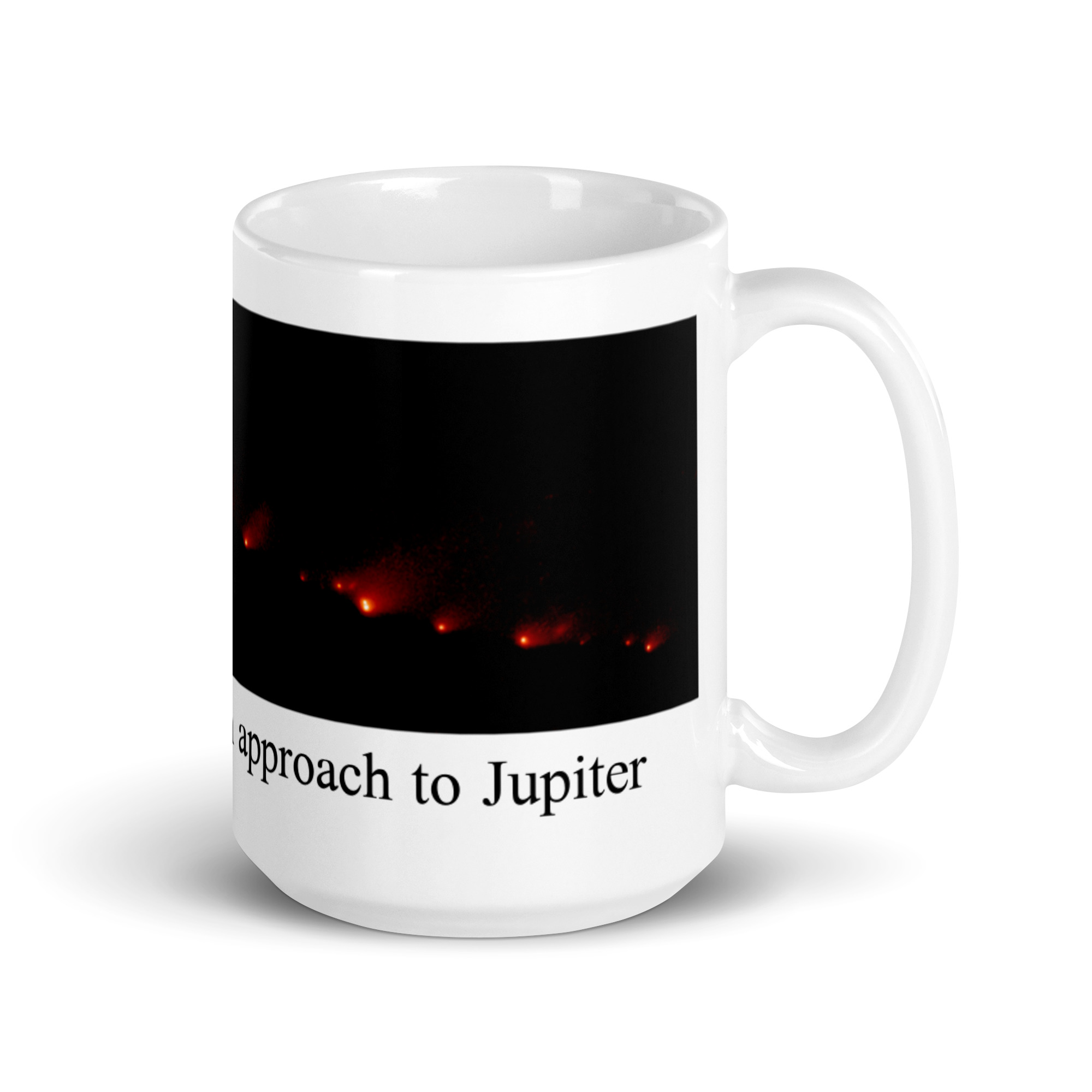 Shoemaker-Levy 9 on approach to Jupiter White glossy mug