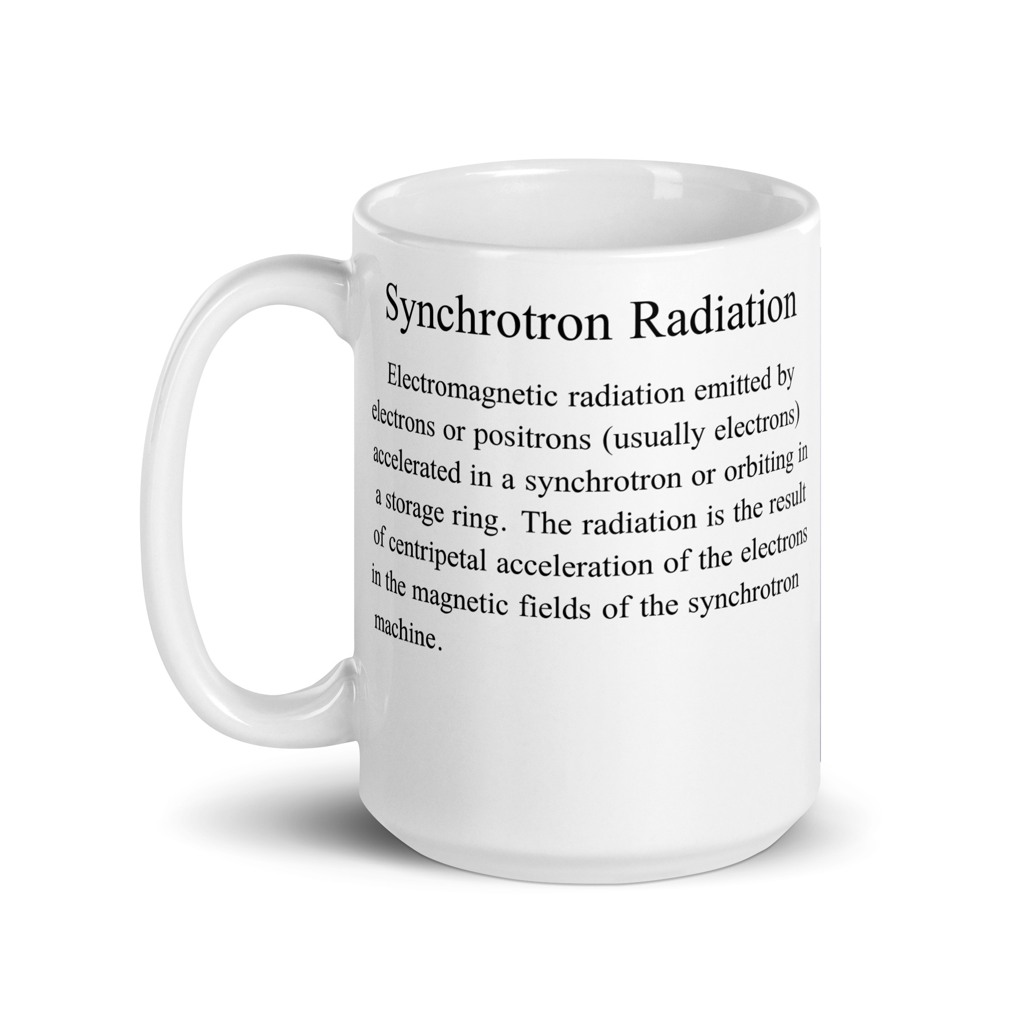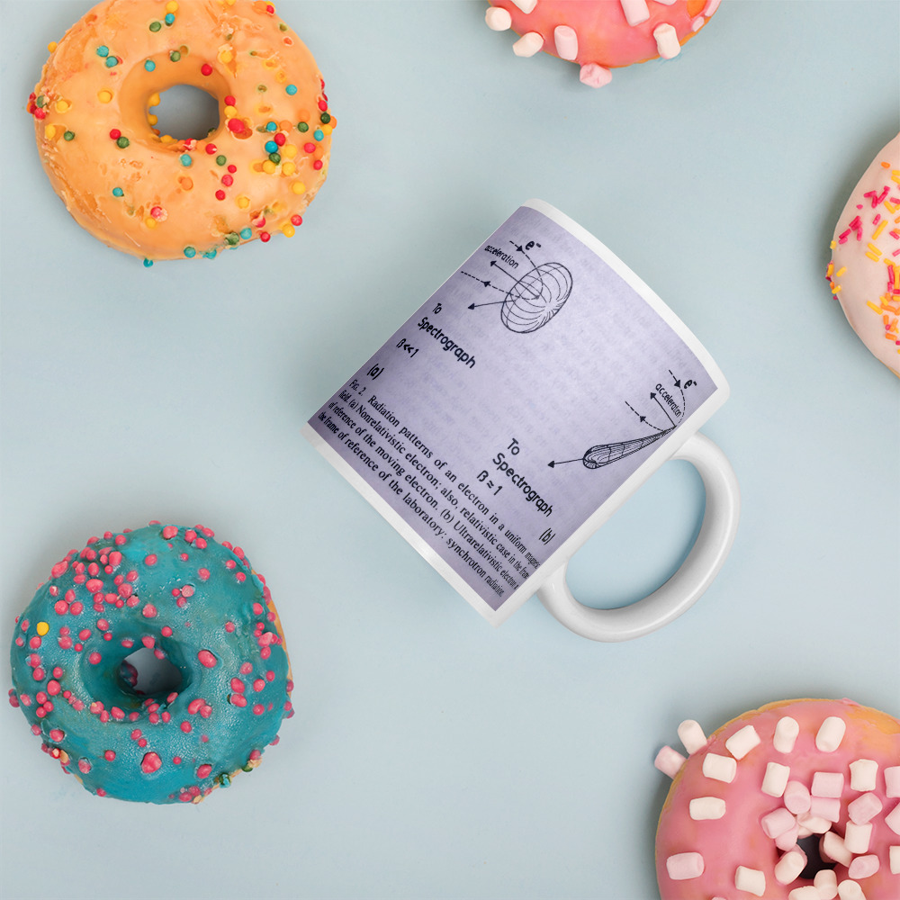 Contemplating photon emission from electrons without atoms? Whether you’re drinking your morning coffee, evening tea, or looking for teaching tools – this mug’s for you! It’s sturdy and glossy with a vivid print that’ll withstand the microwave and dishwasher.