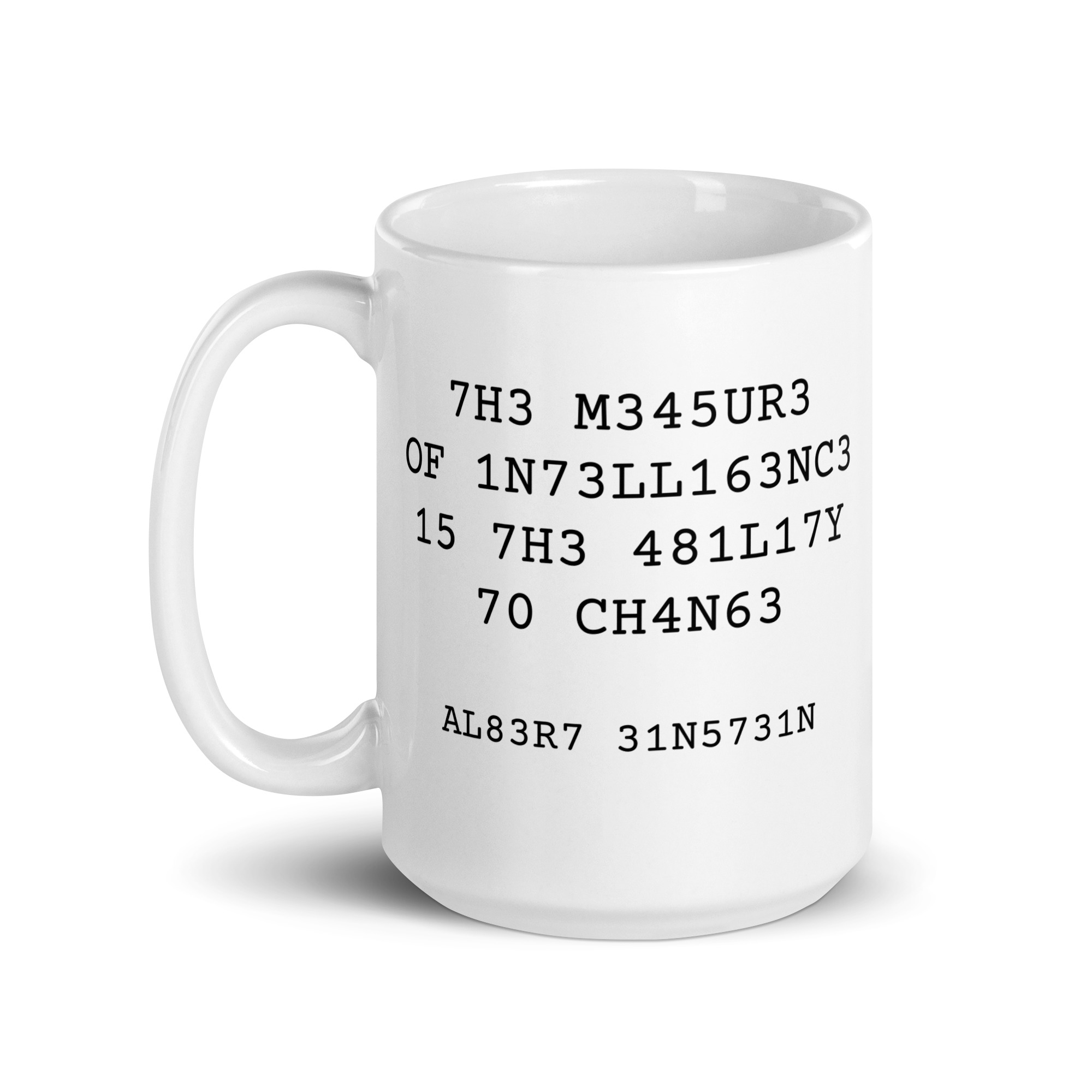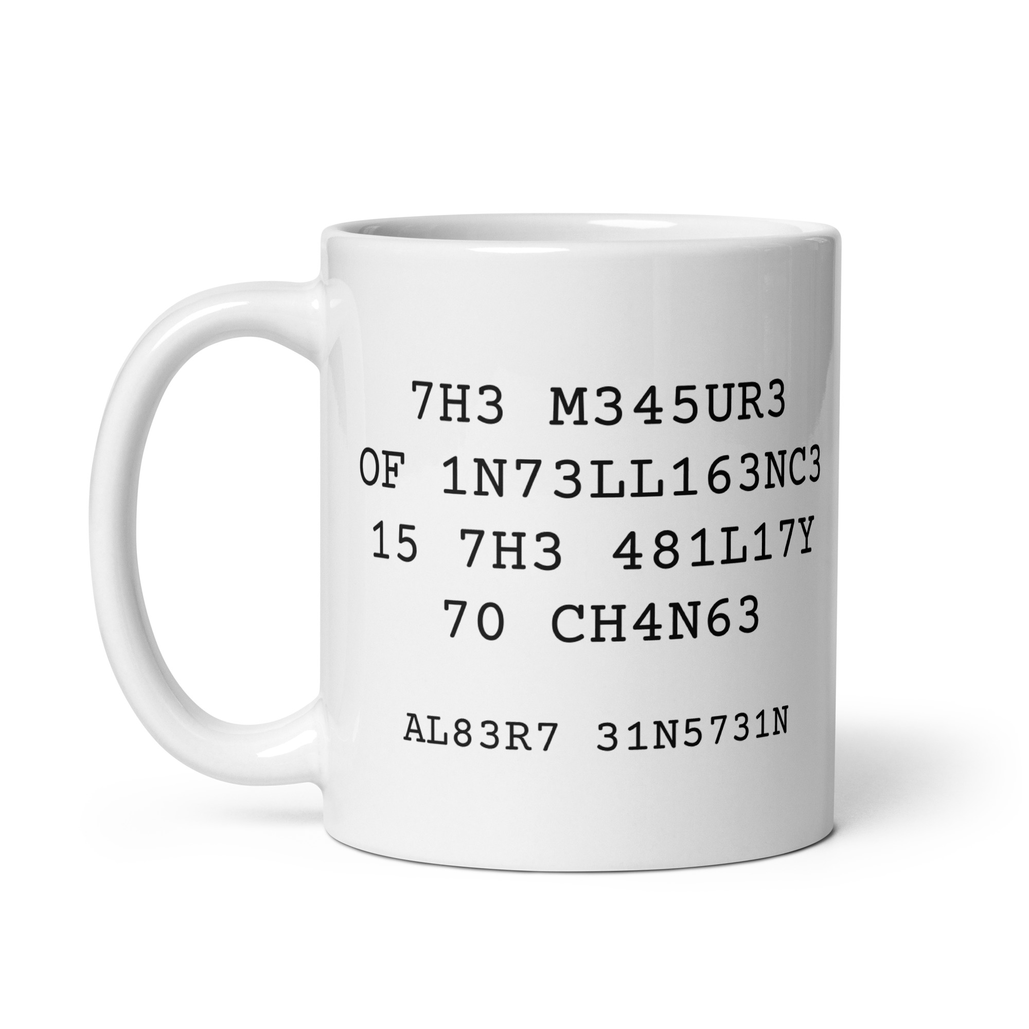 7H3 M345UR3 OF 1N73LL163NC3 15 7H3 481L17Y 70 CH4N63. Whether you’re drinking your morning coffee, evening tea, or something in between—this mug’s for you! It’s sturdy and glossy with a vivid print that’ll withstand the microwave and dishwasher.