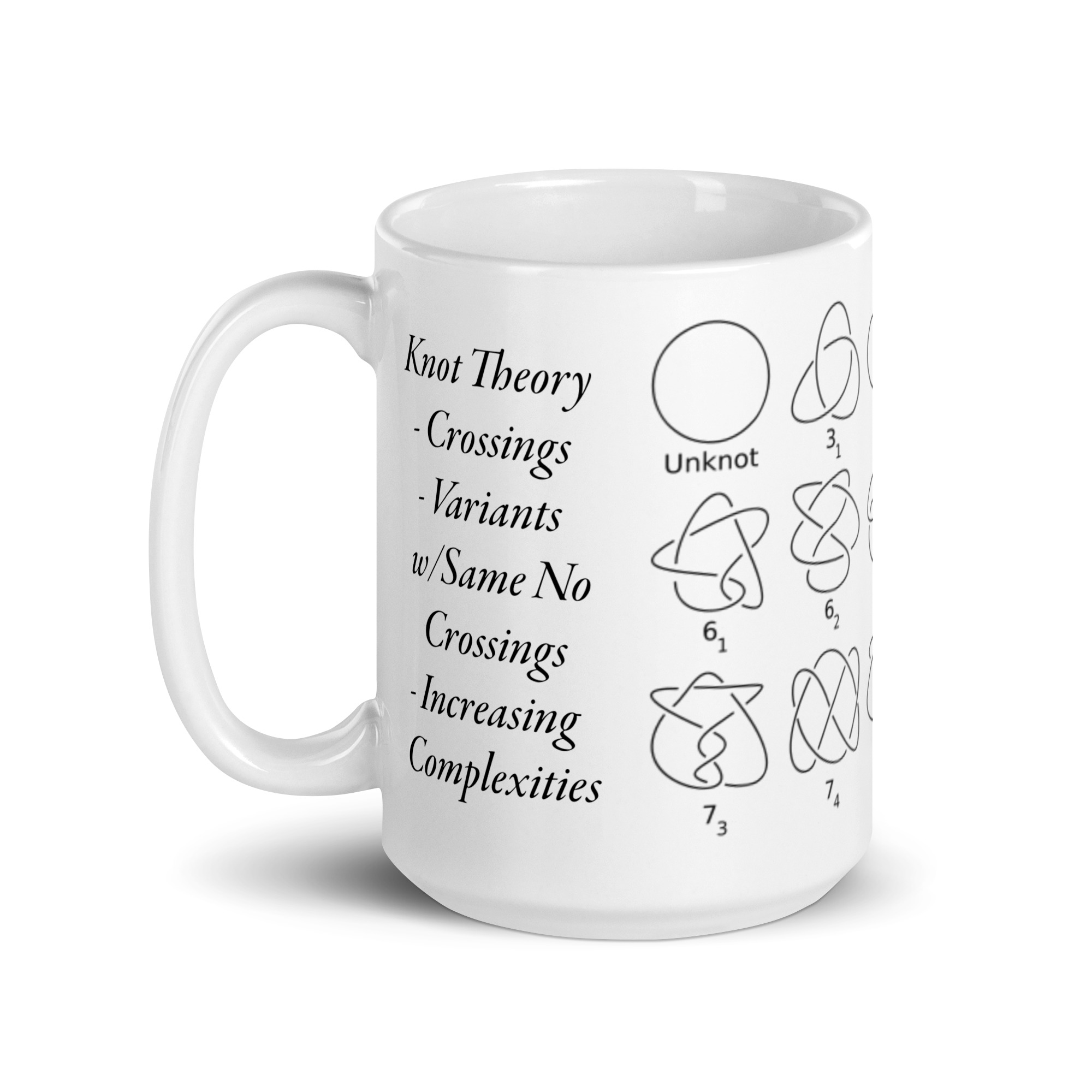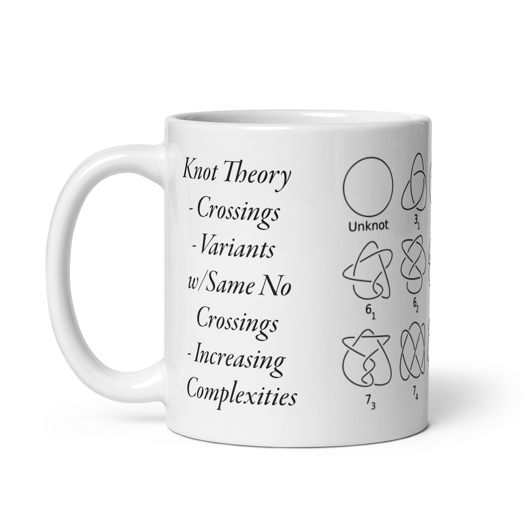 You may need something to look at contemplating knots more complicated than these whether you’re drinking your morning coffee, evening tea, or something in between – this mug’s for you! It’s sturdy and glossy with a vivid print that’ll withstand the microwave and dishwasher.