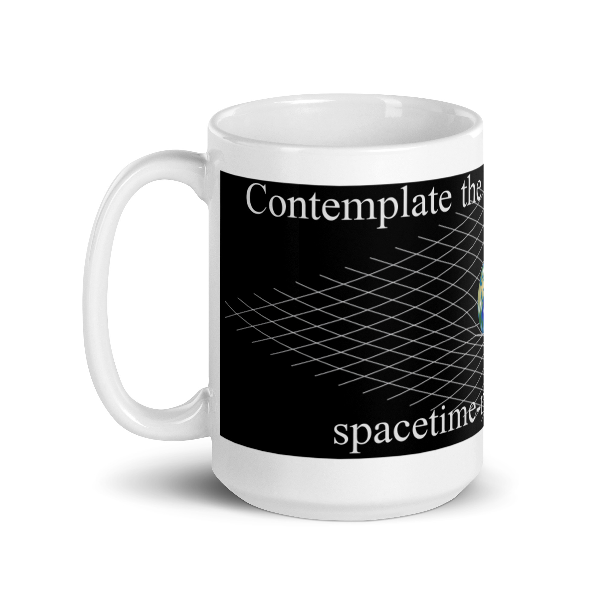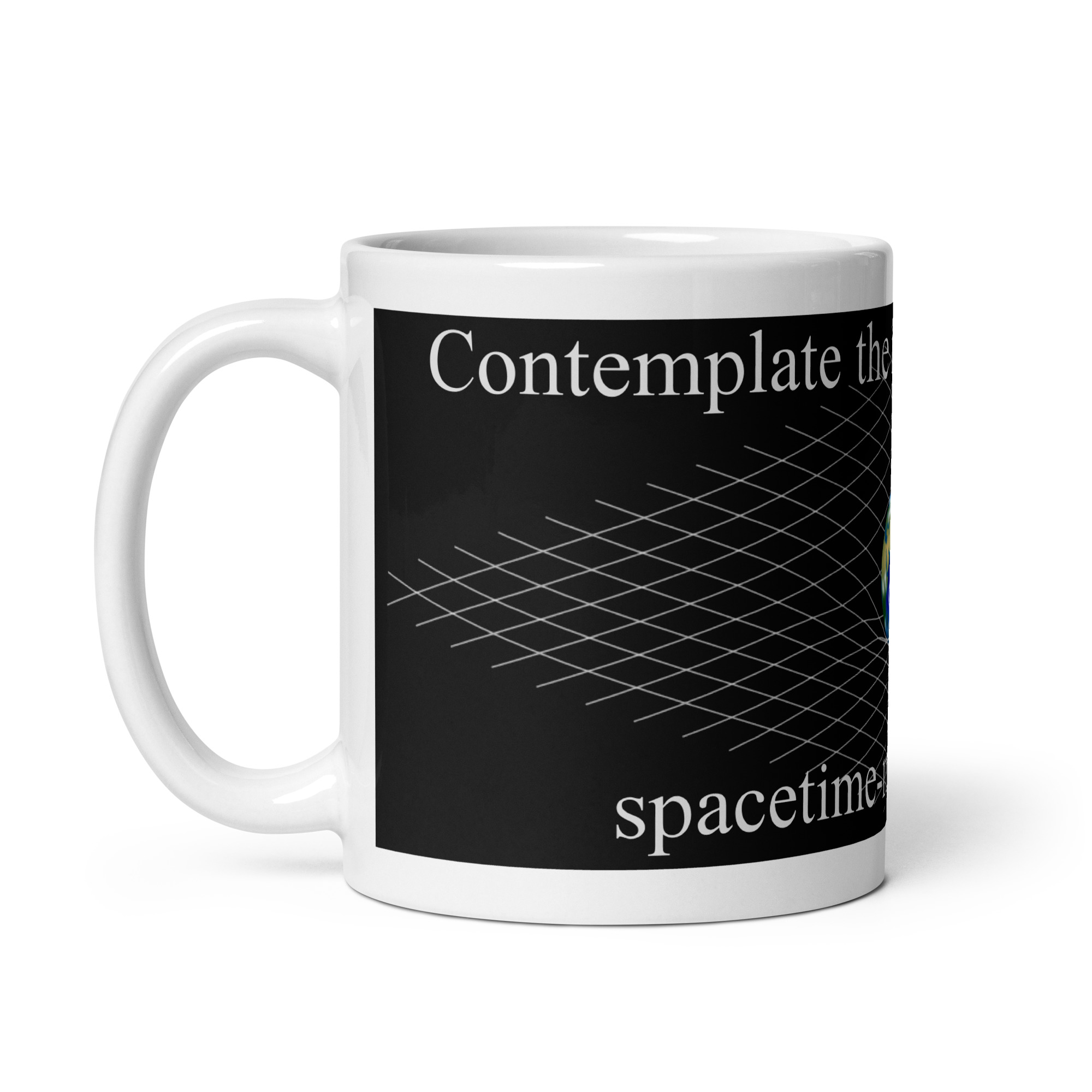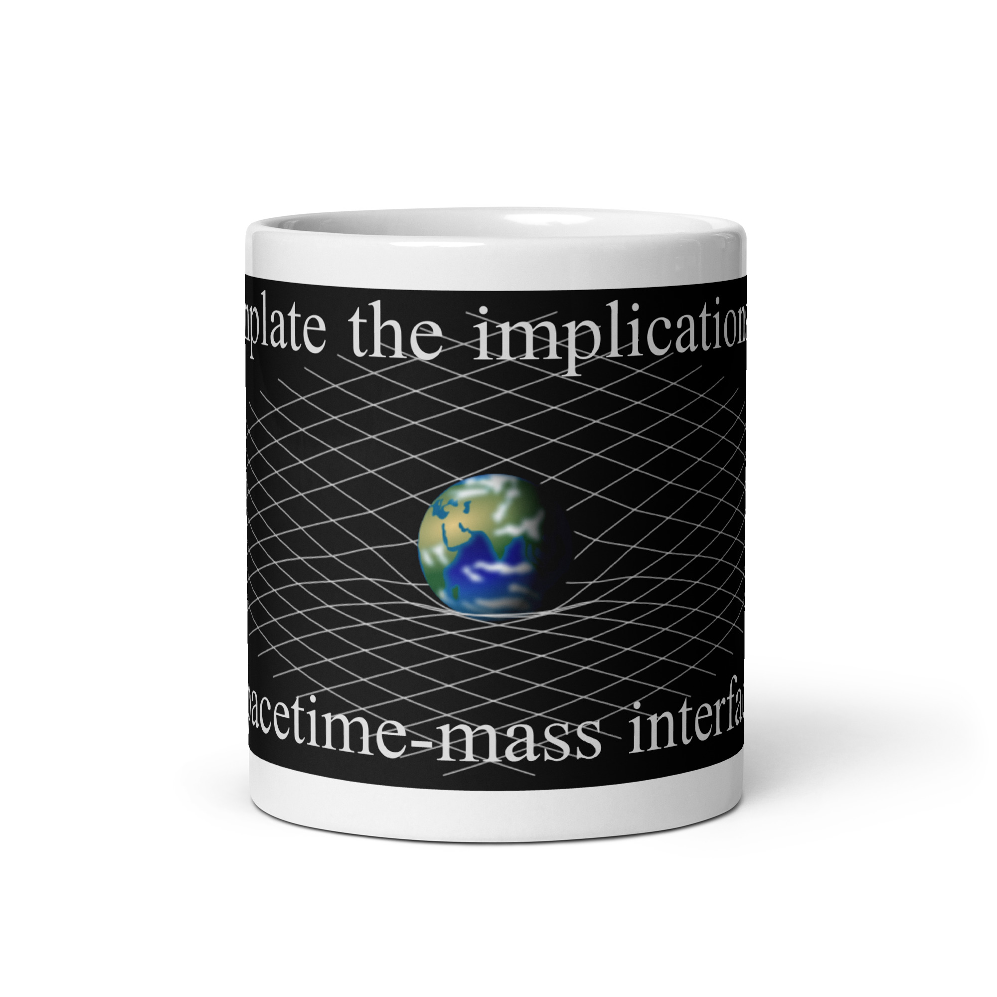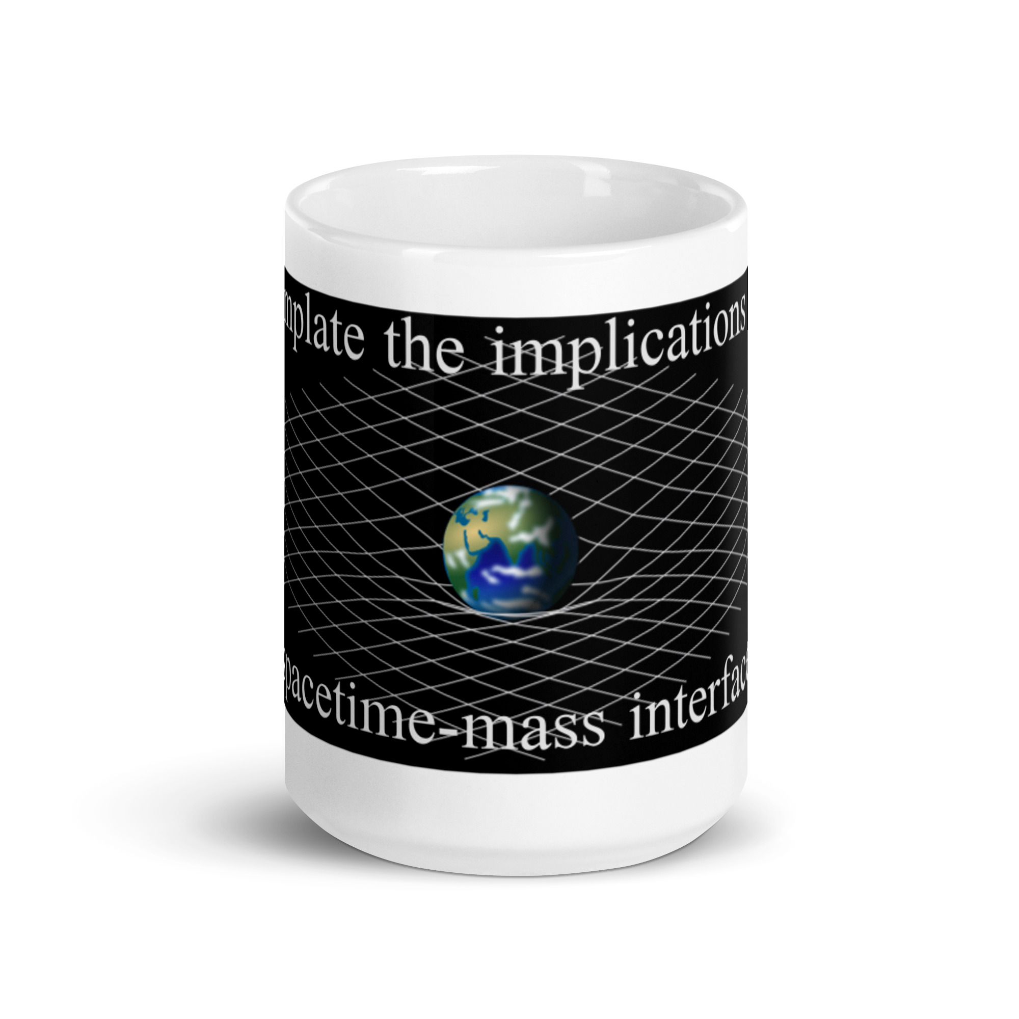 Contemplating the implications of the spacetime-mass interface whether you’re drinking your morning coffee, evening tea, or something in between – this mug’s for you! It’s sturdy and glossy with a vivid print that’ll withstand the microwave and dishwasher.